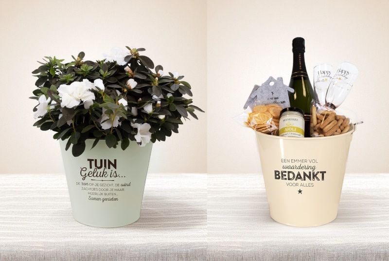 De CADEAU-EMMER is gemaakt uit metaal en kan je vullen met o.a. flesjes, snoepjes, bloemen, ... .